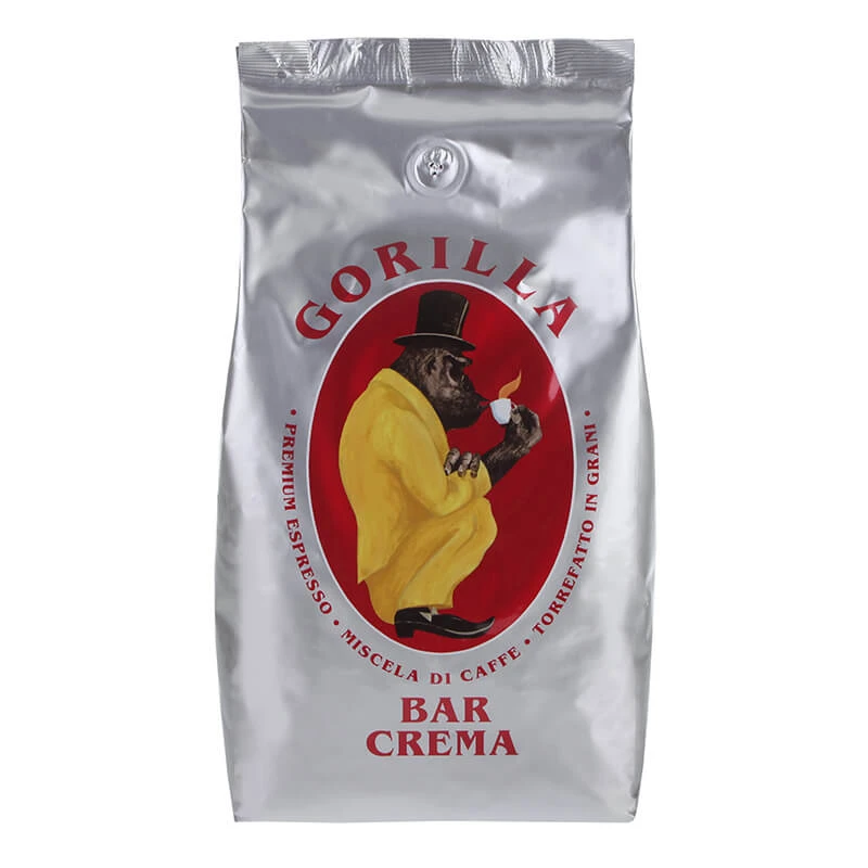 Der Gorilla Bar Crema schmeckt sowohl fantastisch als Espresso als auch mit Milch in Form eines Cappuccinos oder Latte Macchiatos. Die Mischung ist für die Zubereitung im Vollautomaten sowie mit der Siebträgermaschine geeignet.