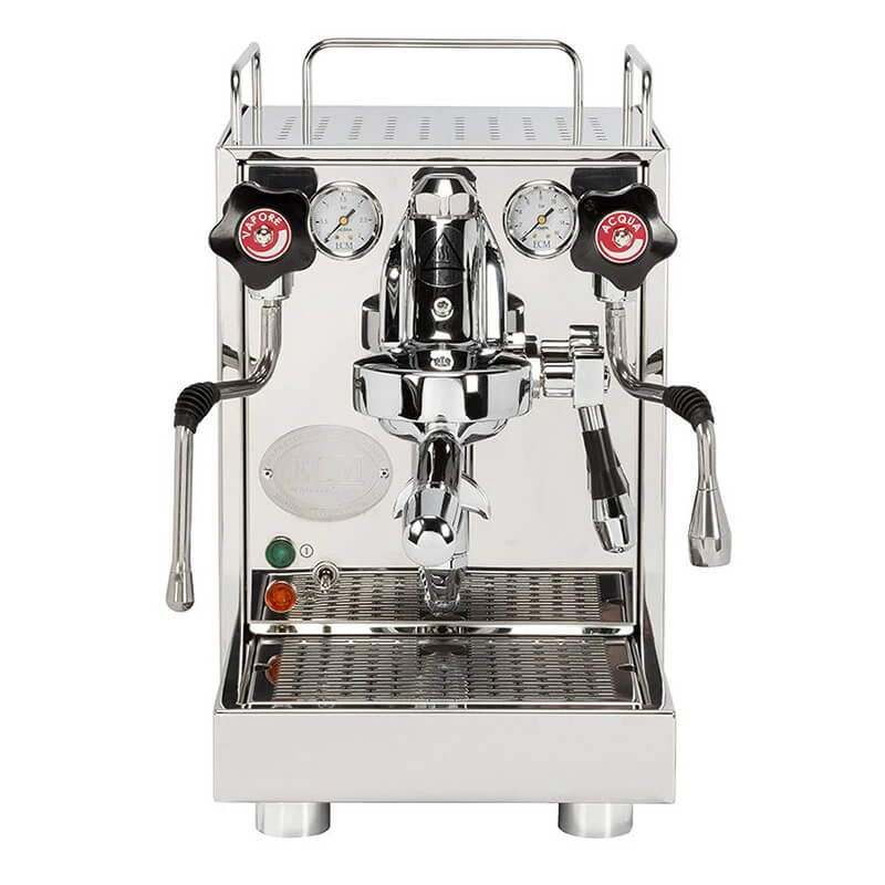 Die Siebträgermaschine Mechanika V Slim von ECM verfügt über eine hochwertige ECM Brühgruppe, ergonomisch abgewinkelte ECM Siebträger und das innovative Thermosiphonsystem. Der Brühdruck lässt sich durch das leicht zugängliche Expansionsventil leicht einstellen, der Wassertank ist dank abnehmbarer Tassenwarmhaltefläche gut erreichbar. Das kompakte Design des handgefertigten Gehäuses aus poliertem Edelstahl und die nostalgisch anmutenden Drehventile runden die Ausstattung dieses Zweikreisers gelungen ab.