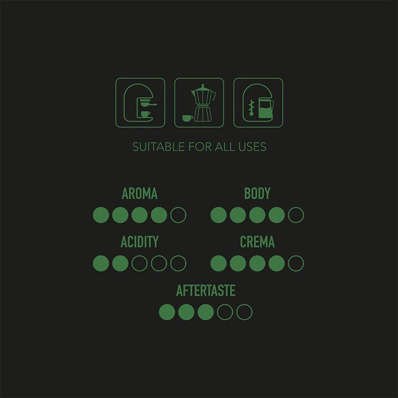 Der Natura N.10 Bio von Mikah ist ein Bio zertifizierter Espresso bestehend aus 100 % Arabica Kaffeebohnen. Diese wurden in den verschiedensten Ländern auf der ganzen Welt und in nachhaltiger Landwirtschaft angebaut. Dabei wird stets auf eine Zusammenarbeit mit zertifizierten Unternehmen in Mexiko, Peru, Nicaragua, Uganda, Honduras und Indonesien geachtet.