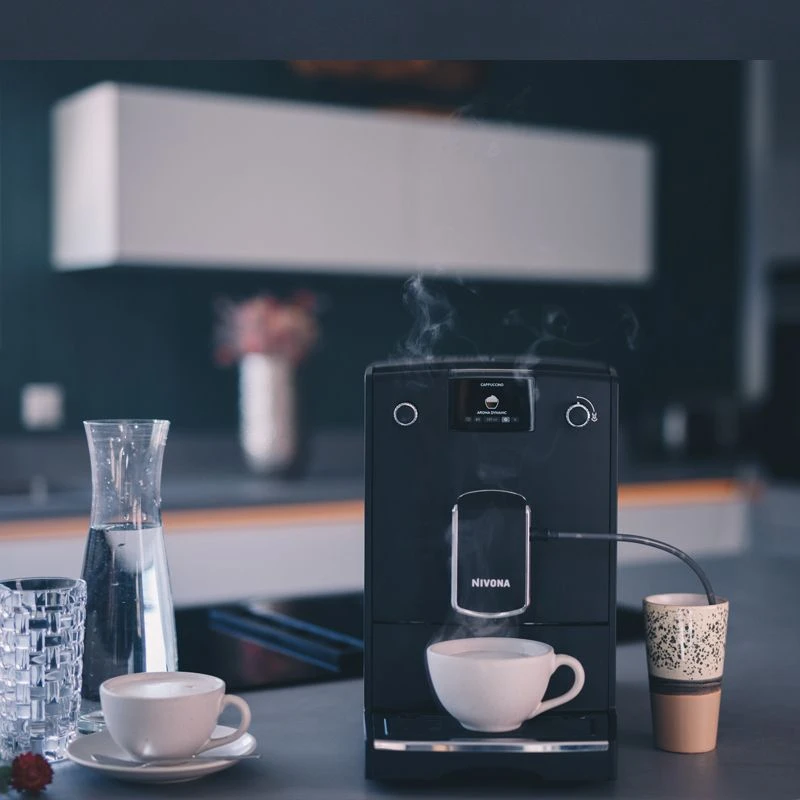 Der NICR 550 Kaffeevollautomat ist das neue Einstiegsgerät vom Qualitätshersteller Nivona. Wie schon von den Vorgängermodellen bekannt, lassen sich sowohl die Kaffeestärke, als auch die Temperatur in drei Stufen einstellen. Zudem lassen sich auch zwei Tassen Kaffee zeitgleich zubereiten. Für die Zubereitung vom Kaffeespezialitäten mit Milchschaum steht die manuelle SPUMATORE bereit. Auch hier lassen sich Milchschaumkonsistenz und Temperatur an den individuellen Geschmack anpassen.